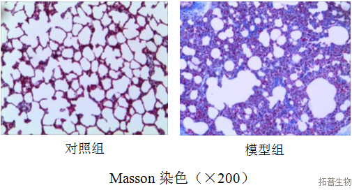 肺纤维化的病理特点为肺部炎症引起肺泡反复持续性损伤及细胞外基质的破坏、修复和过度沉积。该病严重影响患者生存质量,预后极差。由于该病发病机制到现在为止尚不清楚,临床上也缺乏相应的有效治疗手段,患者病死率居高不下,因此建立一个可靠稳定的肺纤维化动物模型是探索其发病机制和开发有效治疗药物的重要前提,实验中常用的肺纤维化诱导剂主要有博莱霉素、百草枯、二氧化硅、石棉、放射线、呼肠病毒、野百合碱等,在这些诱导剂中,以博莱霉素使用最为广泛,己成为经典的动物肺纤维化模型的诱导剂。