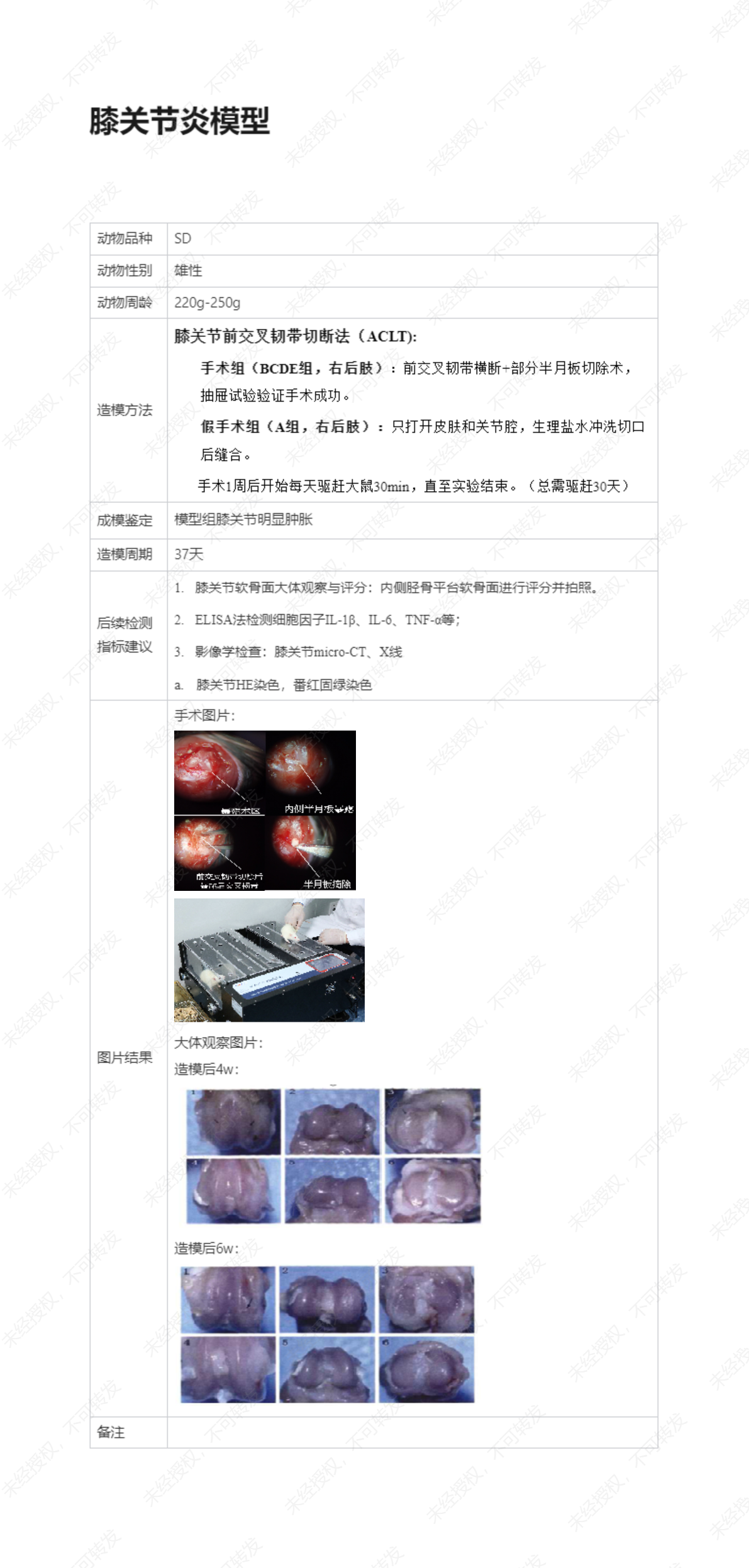 大鼠关节炎模型
