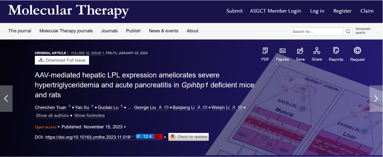 歪打正着:肝脏异位表达LPL基因矫正GPIHBP1缺陷导致的严重高甘油三酯血症是这样发现的